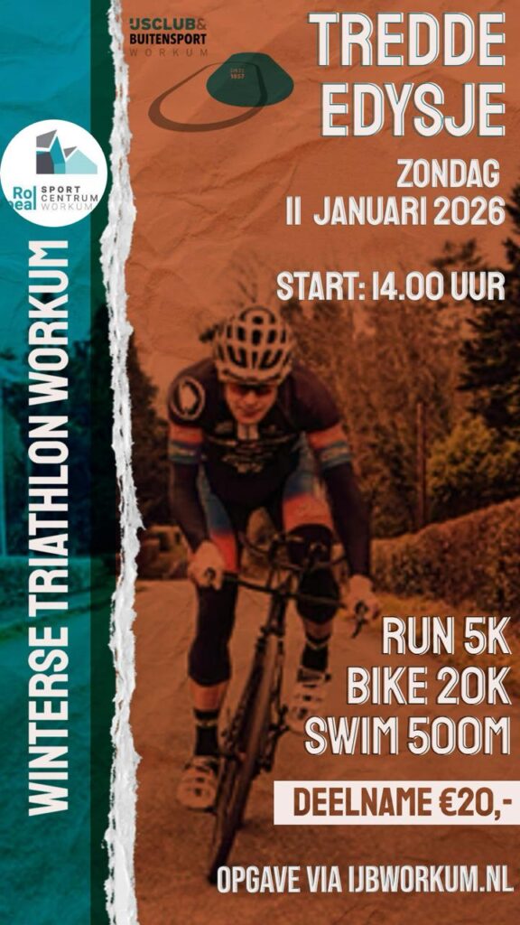 Zondag 11 januari 2026 vindt de 3e editie van de winterse triathlon te Workum plaats. GEWIJZIGD: ivm het weer is de triathlon verplaatst naar zondag 1 februari 2026.